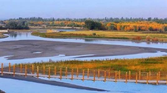 新疆金湖杨国家森林公园位于新疆维吾尔自治区喀什地区泽普县城西南,地理坐标为东经76°52′38"—76°59′50",北纬37°58′15"—38°03′49",是具有生