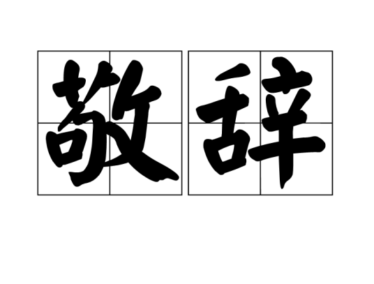 敬辞,汉语词语,指语气恭敬的辞语。中国是礼仪之邦,来往称呼接洽往往使用敬辞。敬辞是指含恭敬口吻的用语,在人们日常交际,特别是书信往来中往往要运用到。汉语中敬辞经常与谦辞联系在一起。谦辞是表示谦虚的言辞,