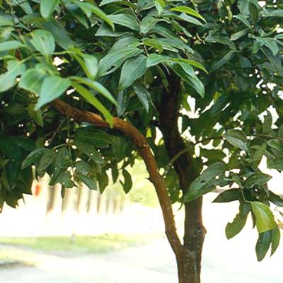 桂叶,常绿乔木,树皮黑褐色。叶互生,革质,叶片长椭圆形或阔披针形,先端锐尖,全缘,深绿色,碎后有清香气味,叶柄浅紫色。伞形花序腋生,雌雄异株,花小,黄色。浆果椭圆形,暗紫色。花期4月。原产于地中海沿岸,