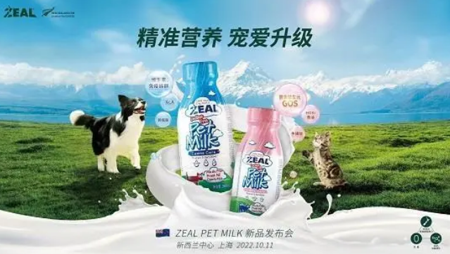 2022年10月11日,新西兰进口品牌ZEAL在上海新西兰中心召开新品发布会,行业首款犬/猫定制牛奶全新升级上市。据了解,ZEAL新推出的这款宠物牛奶是市面上首款,也是唯一一款真正做到犬猫区隔的宠物奶产