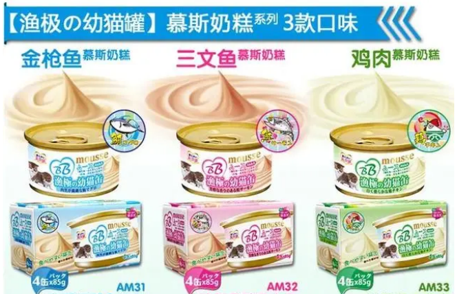 渔极是日本 AkikA 上井泉株式会社旗下宠物食品品牌,其生产企业是已有超过 50 多年的上市公司,拥有多项国际权威认证资格。品牌旗下产品渔极 AM 慕斯奶糕罐,采用三款纯白肉碾磨,不含鳍骨、不含廉价禽