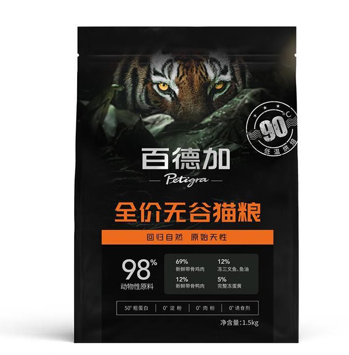 而且百德加烘焙粮好就好在经过12h的90℃低温烘焙出来的,颗粒还很清爽干脆。百德加烘焙猫粮做到了真正的0肉粉0淀粉,98%的含肉量,非膨化,实现真正的“纯肉粮”。