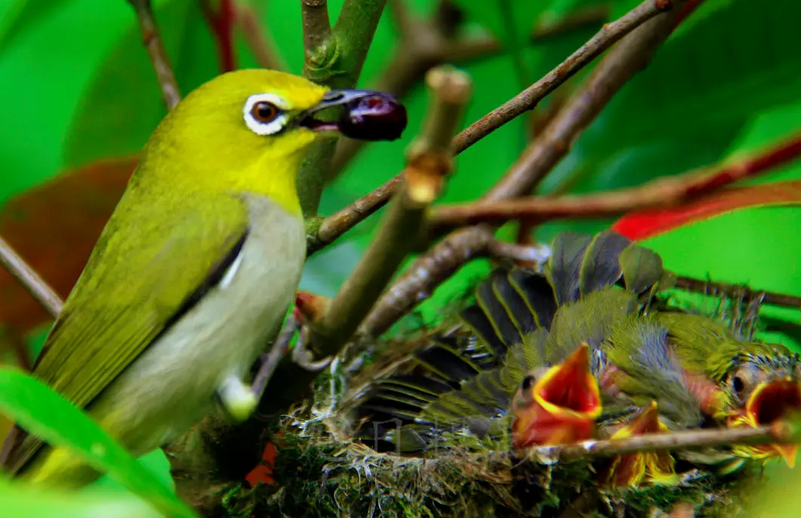 暗绿绣眼鸟日常饮食,吃虫篇!