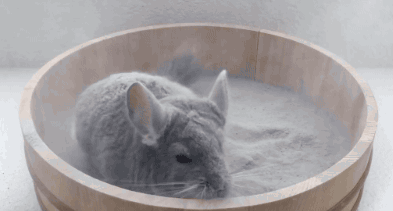 龙猫洗澡需要用专门的浴沙,在容器里放1~2厘米深,装沙容器则选择30cm直径的。刚到家的龙猫不会洗澡,反复将浴沙拿进、拿出笼子,四五次后它就会洗了。建议每1~2天让龙猫洗一次澡,每次洗完筛干净浴沙,并拿