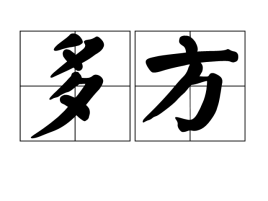 多方,旧指列国诸侯;多方面;学识广博而驳杂。见《墨子·公孟》:“人之所得於病者多方,有得之寒暑,有得之劳苦。”基本信息中文名:多方外文名:ineveryway拼音:dūofāng注音:ㄉㄨㄛㄈㄤ近义词: