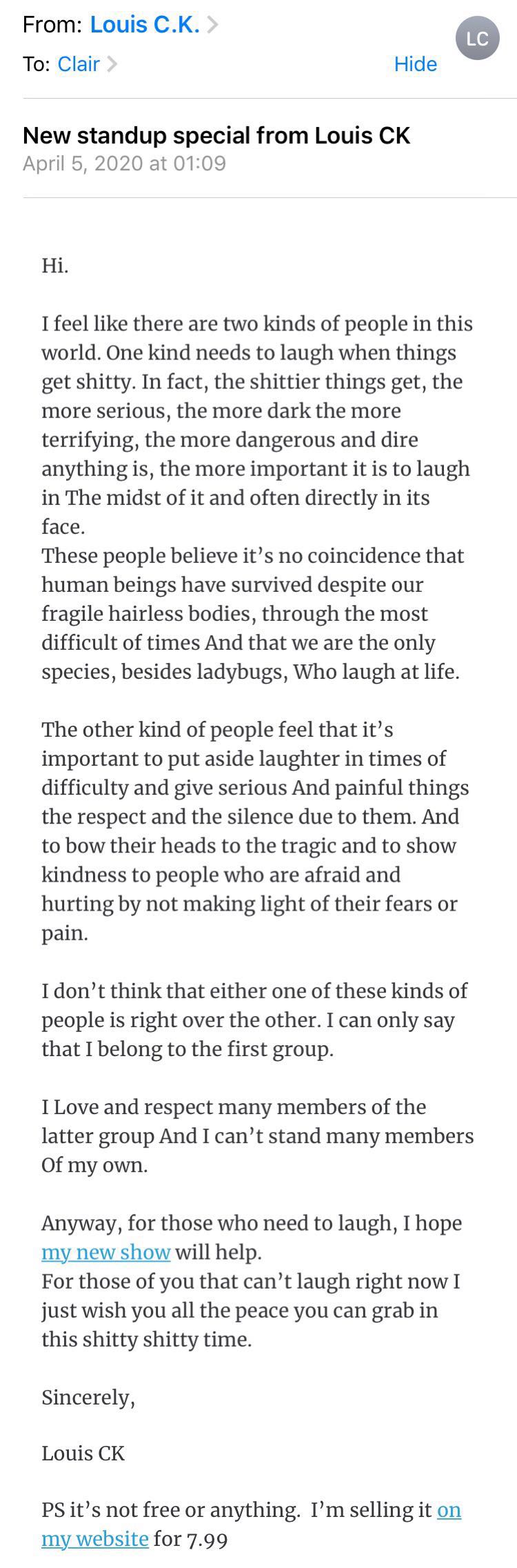 官方网站: https://louisck.com/products/sincerely-louis-ck