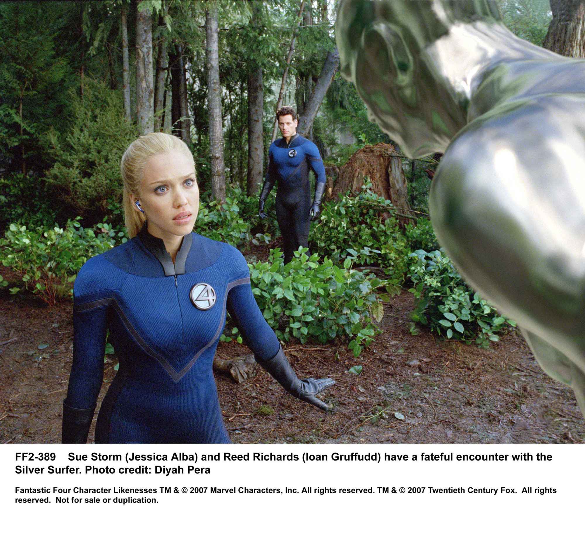 里德忙叫“霹雳火”(克里斯·埃文斯 Chris Evans 饰)追上去看过究竟,熟料“霹雳火”完全不是对方对手,里德的担忧变成了现实:新的敌人出现了――“银影侠”(道格·琼斯 Doug Jones 饰)!