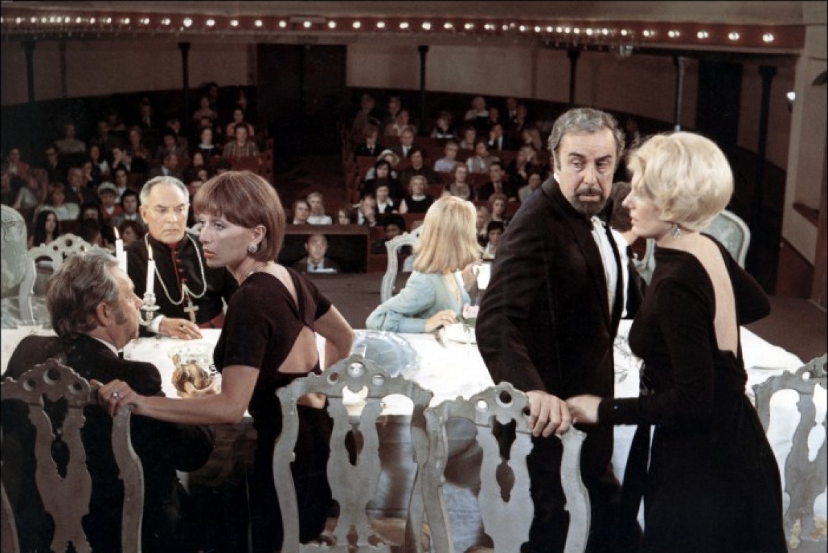 客人们来到塞内夏尔家参加晚宴,却发现晚宴要在明晚才举行。他们只好去一家小酒馆,但计划再次受挫,因为小酒馆正在为他们刚去世的店主守灵。另一次聚餐也由于塞内夏尔夫妇偷偷从家里溜出去亲热而临时取消;来客们却误以为警察要发动袭击,赶紧溜之大吉。接下来的一次晚宴也被迫中断,因为拉练的部队出人意料地出现在塞内夏尔公馆。甚至噩梦也为他们要举办晚宴这一受挫的努力提供佐料:他们兴致勃勃入席,却莫名其妙发现身边的帷幕突然拉起,他们成了坐在舞台上用餐的表演者。还有一次,陆军上校当着唐·拉斐尔大使的面污辱了所谓的米兰达共和国,险些酿成外交灾祸,当然更不必提那晚的聚餐了。就这样,影片中的六个人物(包括塞内夏尔夫妇、唐·拉斐尔大使)不断地坐下来用餐,却总是出现意想不到的障碍,使他们吃不成。