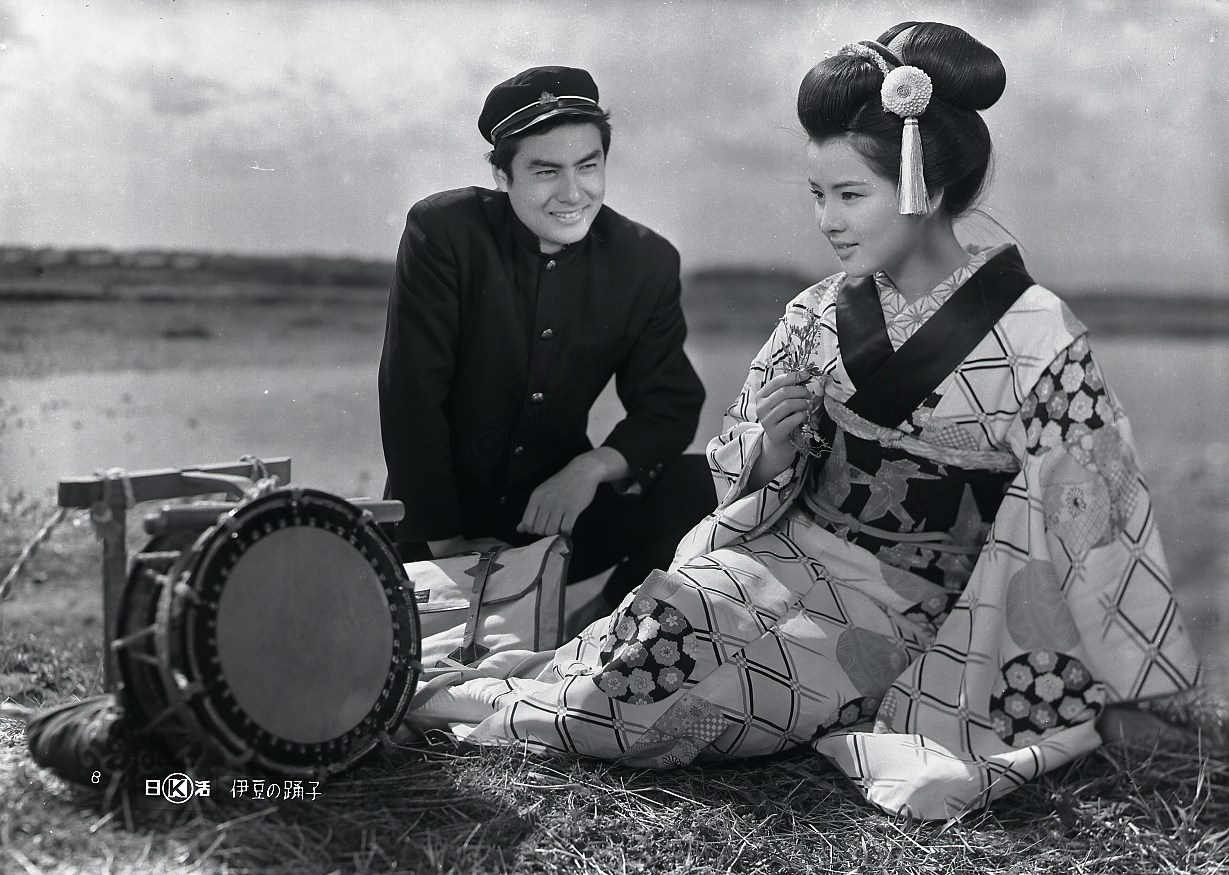 年轻学生(高桥英树 饰)利用假期外出旅行,在行至伊豆汤岛时,他邂逅了几位巡回表演的歌舞伎艺人,其中一名梳着旧时发髻、伶俐清秀的年轻舞女(吉永小百合 饰)引起了学生的注意。