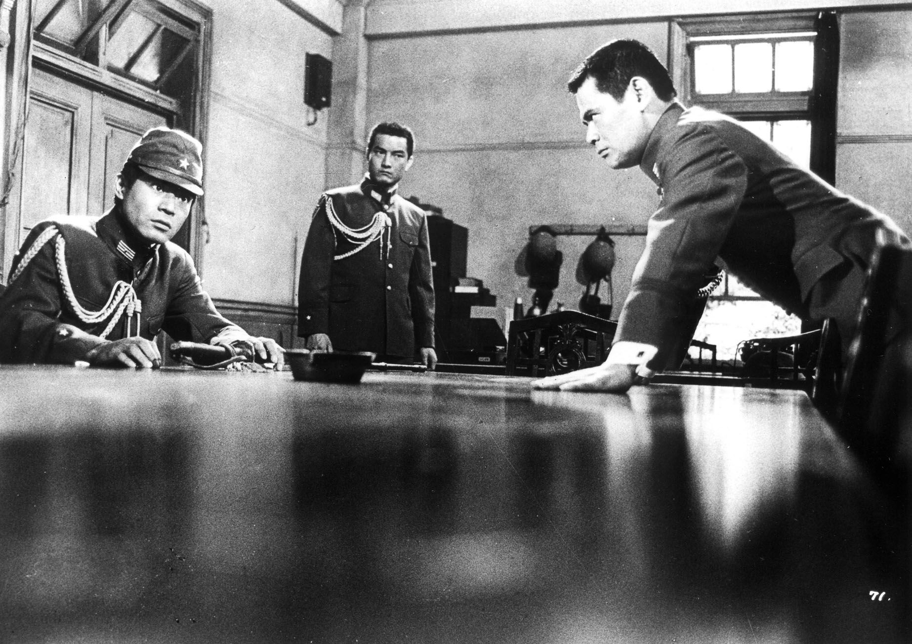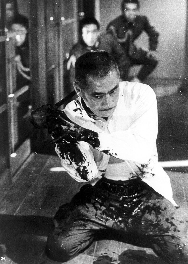 日本1967年冈本喜八经典名作之一,《电影旬报》评选的日本百大佳片之一。影片结尾三船敏郎剖腹自杀一段情节的刻划堪称经典中的经典。由于影片是黑白的画面,当三船敏郎左至右横切腹部时,鲜血从喷涌而出的场面令人毛骨悚然,这个情节大约持续了10分钟左右,充分显示了日本军国主义的盲目性。