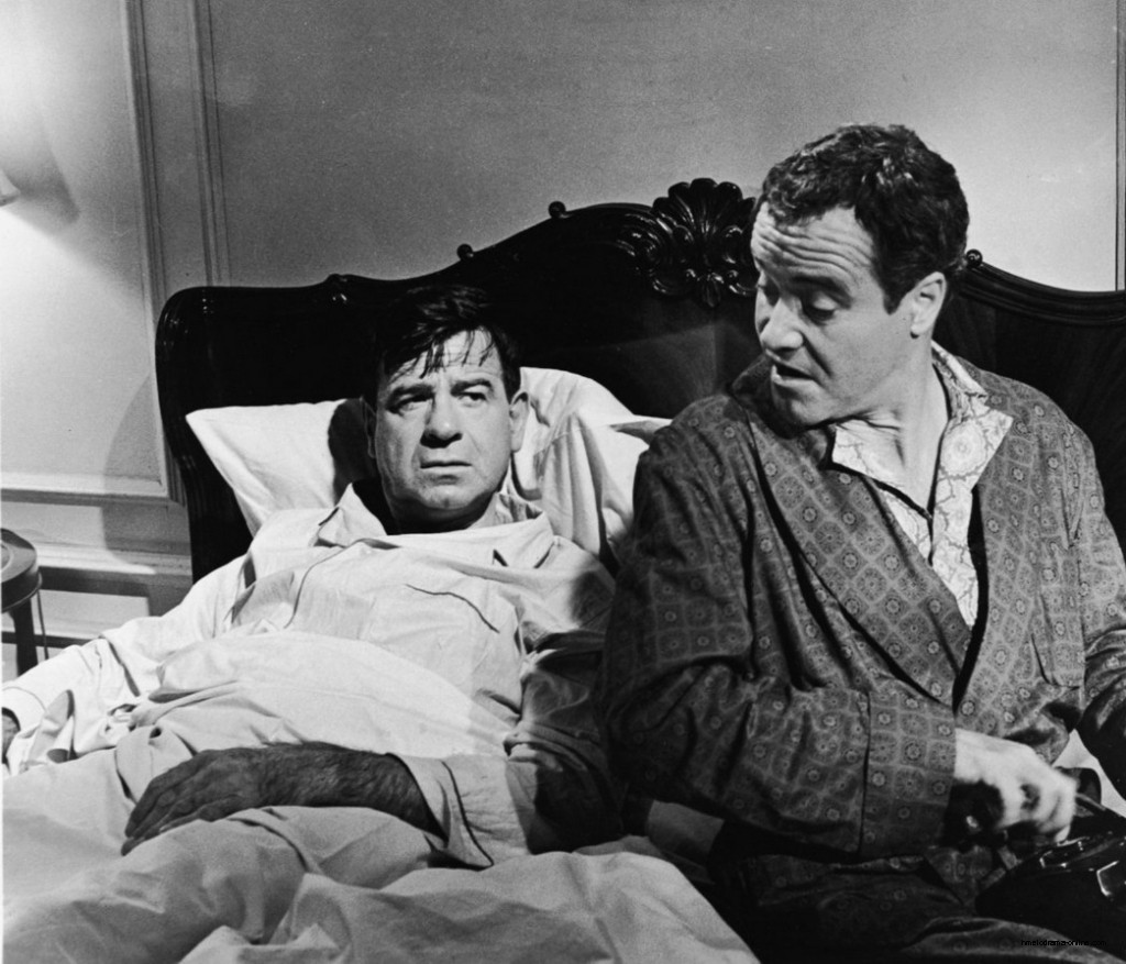 虽然“同居”中的两人常常因为一些小事拌嘴,但他们的生活都因为对方的存在而有了一丝的生机,隔壁住的一对来自英国的姐妹花更是给予了他们无尽的幻想。在奥斯卡的极力反对下,菲利克斯还是将两姐妹邀请到家中做客,没想到四人相处的不错,当事态向着理想的方向发展时,奥斯卡却打死也不肯继续了,抓狂的菲利克斯大发雷霆,这对好友之间的友情岌岌可危。