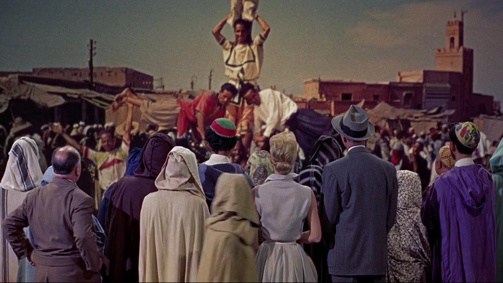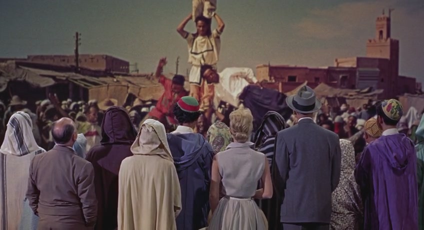 本(詹姆斯·斯图尔特 James Stewart 饰)和乔(桃丽丝·戴 Doris Day 饰)是一对感情十分要好的夫妻,带着儿子汉克(Christopher Olsen 饰),一家三口来到了风景如画的摩洛哥度假。一次偶然中,本和乔结识了名叫路易斯(丹尼尔·盖林 Daniel Gélin 饰)的男人,他们在一起相处十分融洽。