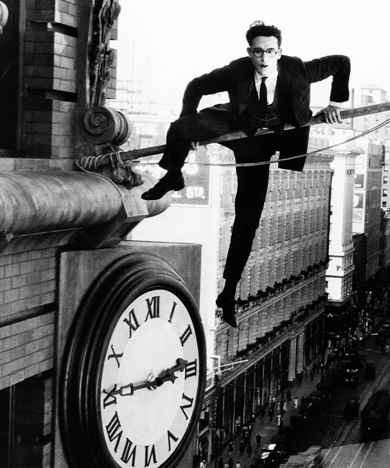 在本片中,罗依德扮演一名百货公司的店员。该公司为了商业宣传,请了一位特技演员前来表演从楼下爬到大楼屋顶的绝技,不料那位特技演员途中与交通警员发生了纠纷而无法赶到。百货公司为了向围观的群众有所交代,只好由罗依德权充演员,在众目睽睽之下表演特技。