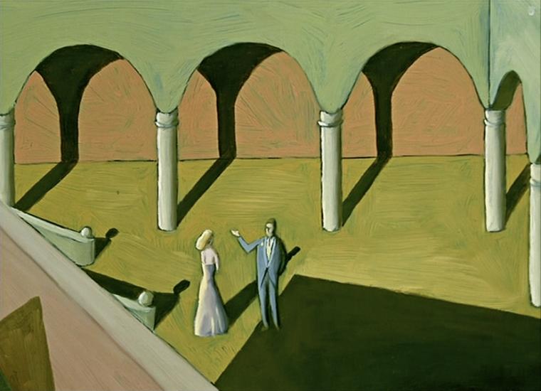 影子是每个人最不能丢弃的忠实伙伴,本动画片里自卑的男人却用它同魔术师交换了财富和幸福,有了舒适的房子、车子和美丽的妻子,可是失去影子后,妻子离开了他,他并没真正得到幸福,也仍不是一个自信的人。意识到没有影子的自己并不快乐并不完整之后,他放弃了从魔术师那里换来的一切,开始在全世界找寻自己的影子。