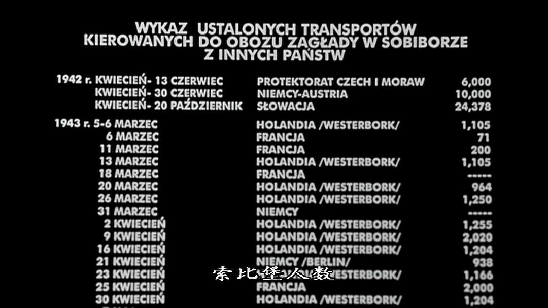 影片讲述了一个犹太人红军上尉组织集中营的犯人反抗德国士兵的事件,那是纳粹集中营里唯一一次成功的暴动,片名是那次暴动的时间地点。这部电影基本由导演与当事人耶华达·雷纳之间的访谈对话组成,当影片结束时导演报出所有被送到索比堡集中营者的到达时间、国籍和编码,带给观者一种极为可怕的感受。