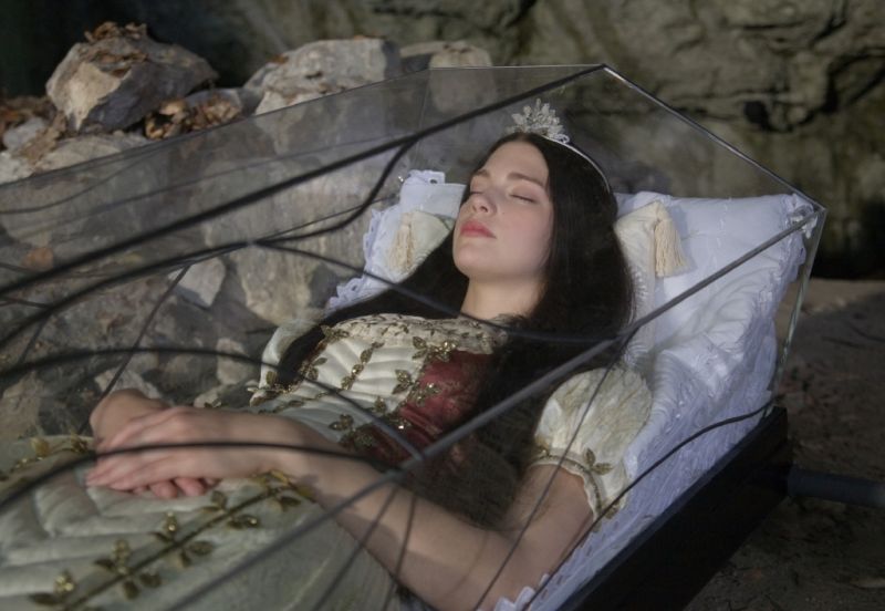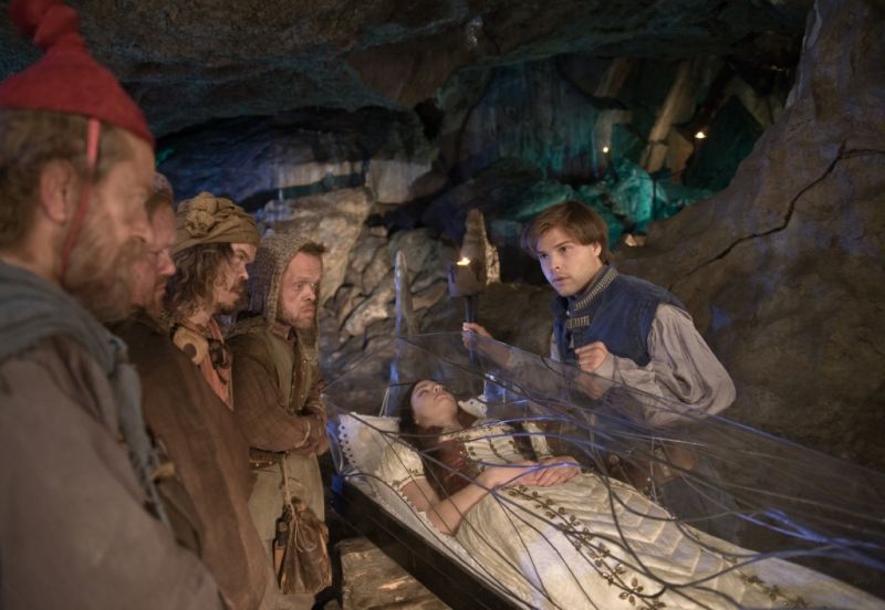 白雪公主(劳拉·伯林 Laura Berlin 饰)的母亲去世后,父亲再娶,继母是一个心狠手辣的女人,她一直妒忌国王对于白雪公主的宠爱,于是派出猎人想要暗杀白雪公主。善良的猎人并没有真的杀死白雪公主,而是放了她一条生路,在森林里迷了路的白雪公主在误打误撞之中走进了小矮人的家,又累又困的她在小矮人的床上睡着了。