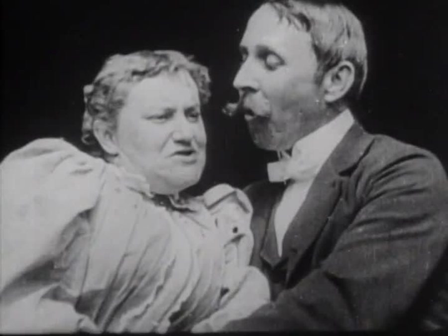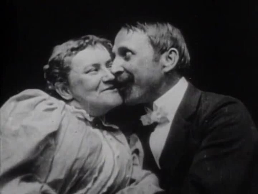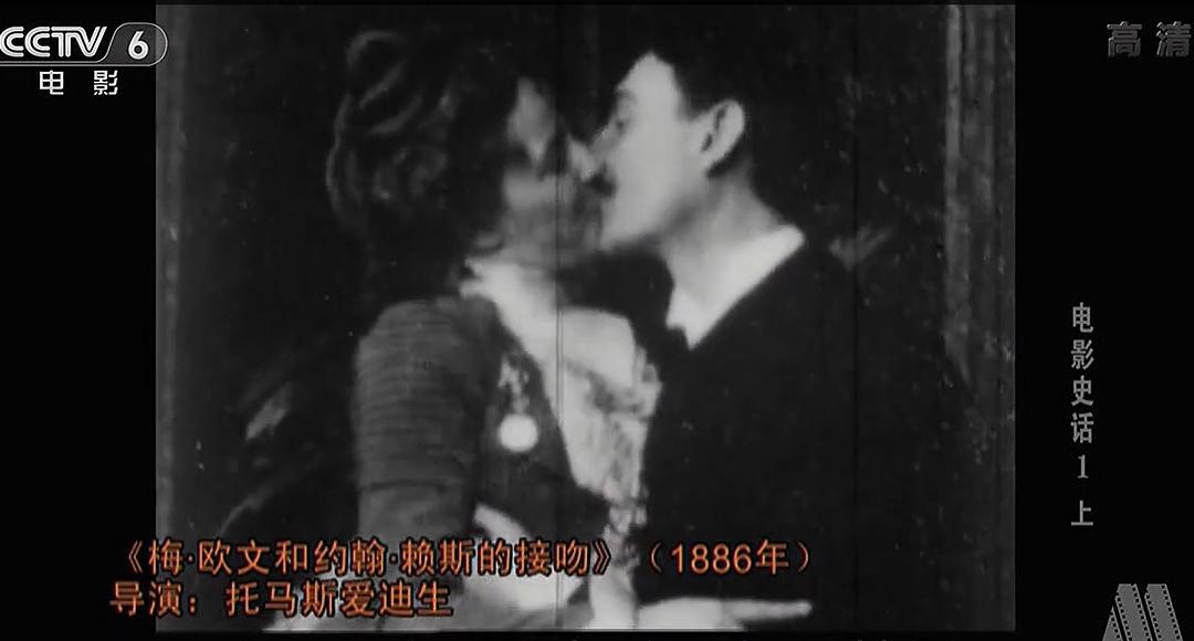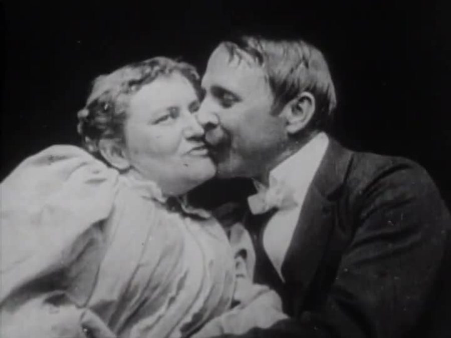 这部摄制于1896年的黑白默片《梅·欧文和约翰·赖斯的接吻》,被称作是影史上的第一出吻戏。此片成为当年爱迪生公司最卖座的影片,但大卖的同时也引起轩然大波,首次招致电影审查的压力。