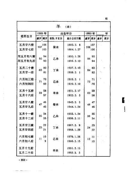 羊年历表
