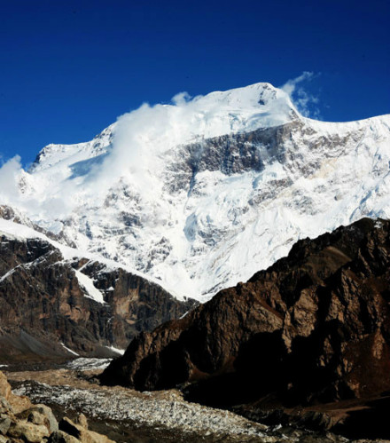 | 雪莲峰 雪莲峰,海拔6627米。位于东经80.9度,北纬42.3度,新疆温宿县境内。在中国境内天山第一高峰托木尔峰东北66千米处,属于南天山山脉。雪莲峰主要有三条山脊:西南山脊、东南山脊和北山脊。在雪莲峰周围还坐落着十几座6000米以上的卫峰和独立山峰,包括6527米的东南卫峰,6472米的北卫峰,6156米的西南卫峰,西方和东北方向还分别有两座标高6438米和6231米的姐妹峰。 |