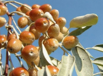 沙枣具有耐盐碱的能力,但随盐分种类不同而异,对硫酸盐土适应性较强,对氯化物则抗性较弱。在硫酸盐土全盐量1.5%以下时可以生长,而在氯化盐土上全盐量超过0.4%时则不适于生长。