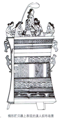 滇青铜器中有划麻工具、纺线工具、织布工具、缝纫工具等。这些青铜器说明,滇人的纺织工艺处于手工捻线、腰机织布的发展阶段。