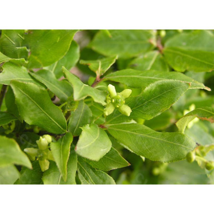 聚伞花序1-3花;花序梗长约1厘米,小花梗长5毫米;花表面有小绒毛,白绿色,直径约8毫米,4数;萼片半圆形;花瓣近圆形;雄蕊着生花盘边缘处,花丝极短,开花后稍增长,花药宽阔长方形,2室顶裂。蒴果较小,1-4深裂,裂瓣椭圆状,长7-8毫米;种子椭圆状或阔椭圆状,长5-6毫米,种皮褐色或浅棕色,假种皮橙红色,全包种子。花期5-6月,果期7-10月。