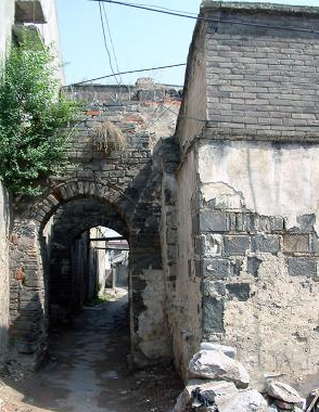 石牌古镇内阊门原为安全防卫所设,从其位置分布看,均设在道路入口或连接点等人流停顿或交汇处,这些阊门也起着分隔空间的作用:同时将街道两侧建筑山墙连为一体,圆弧形的门洞类似于中国古典园林中的月洞门起着框景的作用。