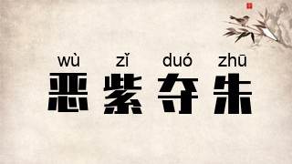 紫:古人认为紫是杂色;夺:乱;朱:大红色,古人认为红是正色。原指厌恶以邪代正。后以喻以邪胜正,以异端充正理。