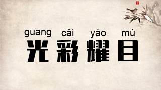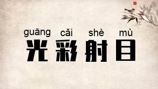 光彩:光泽和颜色;射:照射。形容光泽色彩鲜艳耀眼