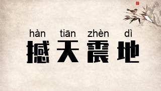撼:摇动;震:震动。震动了天地。形容声音或声势极大。