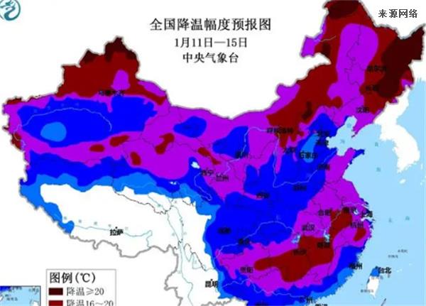 今年首场寒潮,在1月11日就开始影响到我国大部分地区,自西向东,自北向南。