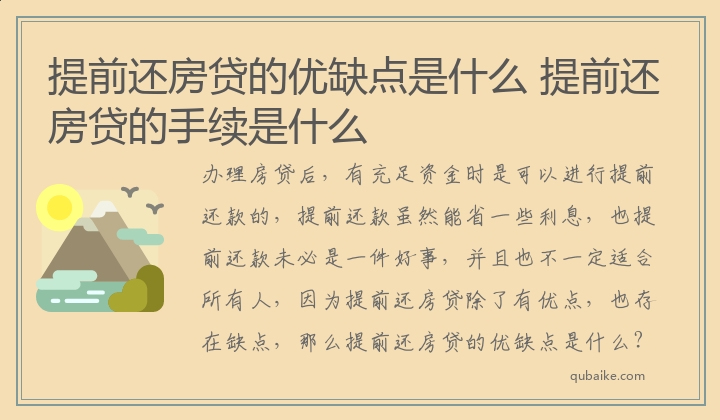 提前还房贷的优缺点是什么 提前还房贷的手续是什么
