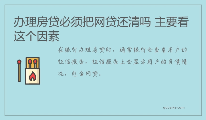 办理房贷必须把网贷还清吗 主要看这个因素