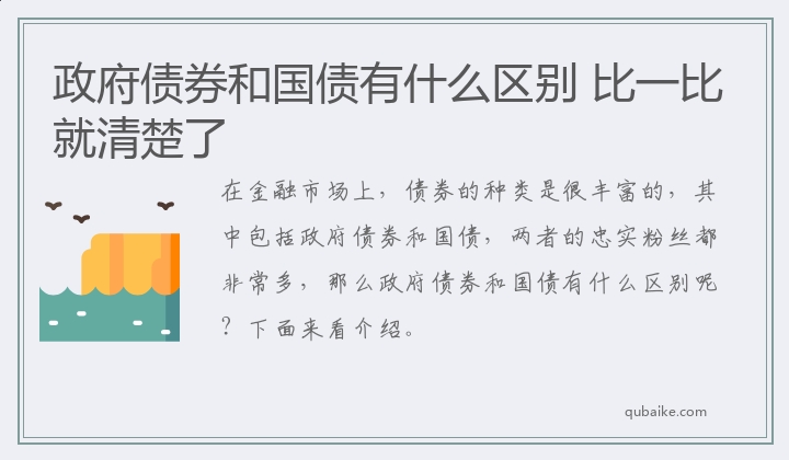 在金融市场上,债券的种类是很丰富的,其中包括政府债券和国债,两者的忠实粉丝都非常多,那么政府债券和国债有什么区别呢?下面来看介绍。