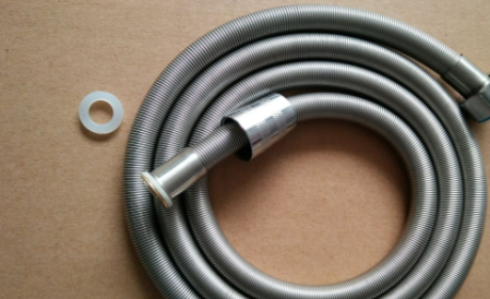 淋浴花洒喷头是和一节软管连接到热水器水管上的,软管除了起到送水作用之外,还可以方便花洒喷头拿上拿下使用。不过淋浴软管长期使用交叠,热水的刺激等等,难免会出现破裂等问题,这个时候我们可以更换更经用材质的软