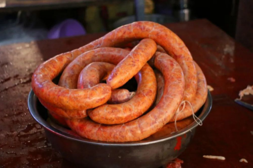 香肠是生活中比较常见的一种肉质食品,它的吃法比较多,可以做各种各样的美食,味道很不错,深受人们喜欢。香肠灌好后一般要用温水洗了之后再扎孔,这样可以方便风干排气,缩短晾晒时间。香肠灌好后要用温水洗后再用针