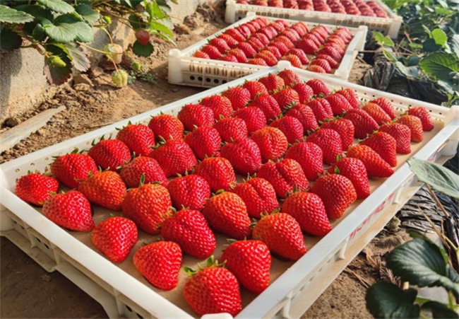 丹东草莓的丹东在辽宁省丹东东港市,丹东地区是我国最大的草莓种植基地,有丰富的水资源和湿润的气候,加上降水充足和阳光充沛,非常适合草莓生长。丹东草莓主要呈圆锥形,个头大小均匀,色泽鲜艳靓丽、果味芳香浓郁,
