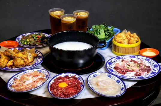 粥底火锅是比较特别的一种火锅,它是广东顺德地区比较流行的一种火锅,和普通火锅的锅底不一样,它的火锅底料是米粥,整体味道是比较清淡的,适合口味清淡的人吃,下菜顺序有讲究,最先煮海鲜,再煮肉类食物,最后下青