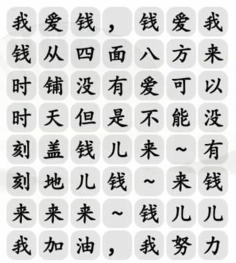 汉字找茬王钱来怎么过?这是一款十分有趣的文字解谜玩游戏,抖音热门游戏,在各种汉字中如何找到破绽,顺利通关,以下为大家分享汉字找茬王完成歌曲详细通关流程。1、这一关是连连看钱来歌词,花间也没听过,不过看。