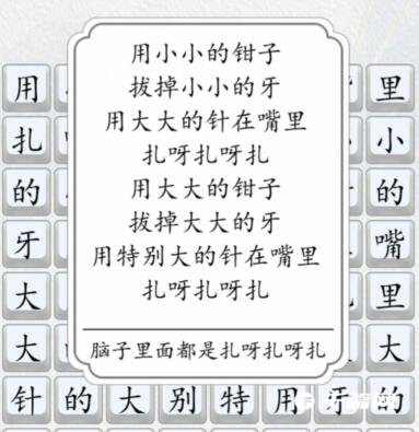 汉字达人是最近非常火爆的一款休闲益智闯关手游,大家可以在抖音搜索中找到该游戏体验!游戏关卡类型多样,包含了歌词连线、字中找字、图文找字的等各种有趣的玩法,那么汉字达人扎呀扎呀扎怎么过关呢?一起来看看吧。