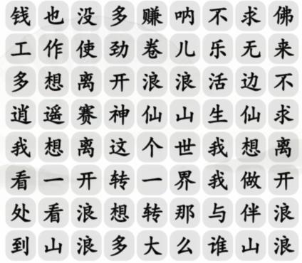 汉字找茬王离开浪浪山怎么过?这是一款十分有趣的文字解谜玩游戏,抖音热门游戏,在各种汉字中如何找到破绽,顺利通关,以下为大家分享汉字找茬王连出正确歌词详细通关流程。1、这一关是连连看歌词,离开浪浪山,没。