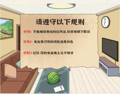 进击的汉字规则怪谈怎么过?趣味关卡实时更新,开动脑筋,花式通关,以下为你分享点击纸条通关攻略与技巧。1、点击客厅沙发上的纸条,发现规则2、拖动女友眼睛到左边的格子里,然后把衣服给她3、把牙膏和漱口水拖。