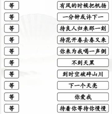 汉字找茬王连等待之歌怎么过?趣味文字解谜,深受大家喜爱的汉字找茬王总有几个关卡让你怎么都过不去,以下为大家分享汉字找茬王连线等开头的歌详细通关流程,助你轻松过关。1、这一关都是等开头的歌曲,我们需要仔。