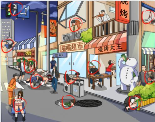 疯狂梗传是一款脑洞大开的解谜游戏,里面有着超多精彩的游戏关卡可以挑战,那么游戏疯狂梗传中的醉酒艺术家这关该怎么过呢?还没过关的小伙伴们快来看看通关攻略吧!醉酒艺术家找12个醉酒的人1、这一关是在街头找。
