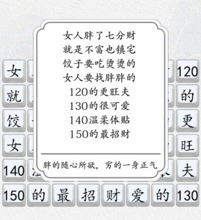 汉字达人是最近非常火爆的一款休闲益智闯关手游,大家可以在抖音搜索中找到该游戏体验!游戏关卡类型多样,包含了歌词连线、字中找字、图文找字的等各种有趣的玩法,那么汉字达人胖点又怎样怎么过关呢?一起来看看吧。