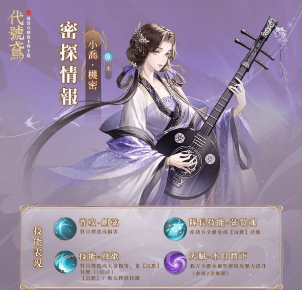 代号鸢小乔强度怎么样,很多玩家想知道代号鸢新上线密探小乔的强度如何,值不值得抽取和培养,小编为大家带来代号鸢小乔强度测评命盘星石推荐攻略,快来了解一下吧。一、代号鸢小乔强度分析:解析:小乔毫无疑问是水。