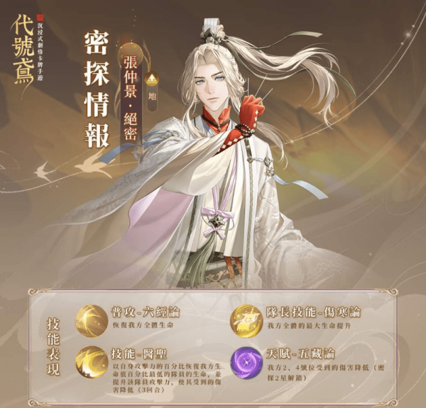 代号鸢张仲景怎么样,很多玩家想知道代号鸢新上线密探张仲景的强度如何,值不值得抽取和培养,小编为大家带来代号鸢张仲景强度测评命盘星石推荐攻略,快来了解一下吧。一、代号鸢张仲景强度分析:解析:事实证明立绘。