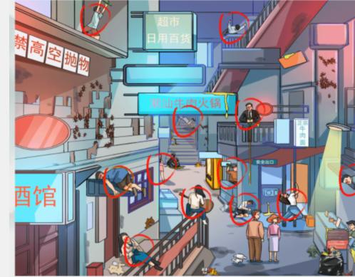 疯狂梗传是一款脑洞大开的解谜游戏,里面有着超多精彩的游戏关卡可以挑战,那么游戏疯狂梗传中的醉倒街头这关该怎么过呢?还没过关的小伙伴们快来看看通关攻略吧!醉倒街头找12个醉酒之处1、这一关是在街头找到1。