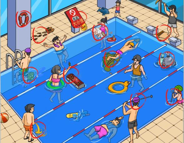 疯狂梗传是一款脑洞大开的解谜游戏,里面有着超多精彩的游戏关卡可以挑战,那么游戏疯狂梗传中的泳池不文明这关该怎么过呢?还没过关的小伙伴们快来看看通关攻略吧!关卡提示:找出12处不文明关卡名称:泳池不文明。