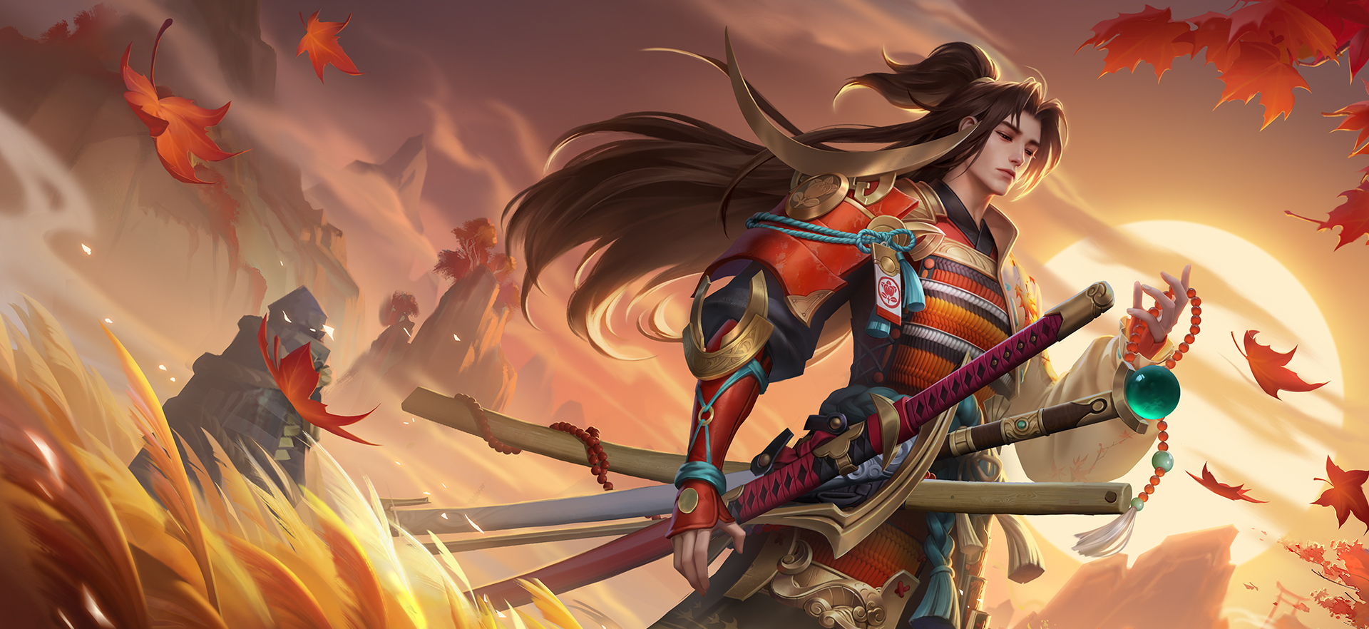皮肤故事“百年之前,红月当空,有三大妖邪作乱。当世最强剑客为天下挥刃,直至三剑皆断方斩妖邪……”——《古今物语》人们传闻,当年剑客斩妖后,以三把断剑将妖邪魂魄封印于深山,护佑一方太平。传闻不假,但并非。